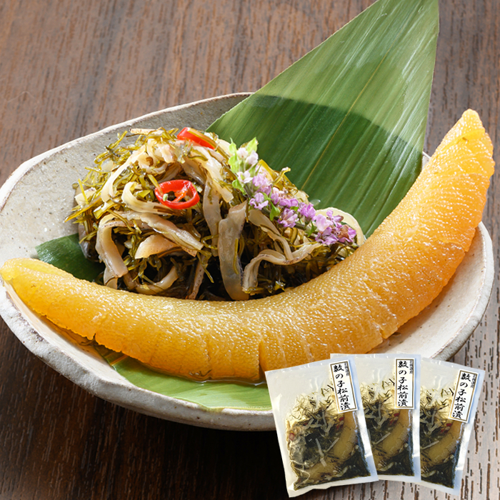 北海道産数の子の一本羽に、ねばりの出るがごめ昆布と真昆布、国産するめいかを加え、秘伝の醤油だれで低温熟成させて仕上げました。添加物を一切使用しておらず、成分や製法にこだわった自然で素朴な味わいが楽しめます。(化学調味料、着色料、保存料不使用)